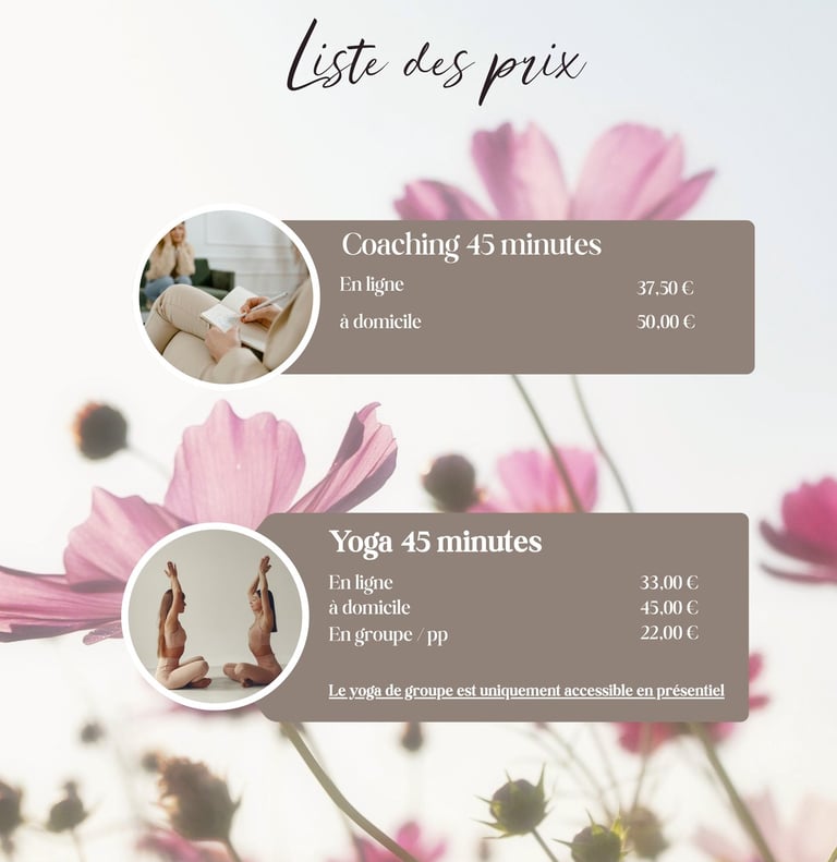 La prise de contact peut également se faire via Instagram, où je vous fournirai toutes les informations nécessaires ainsi que l’accès à notre rendez-vous en ligne.
